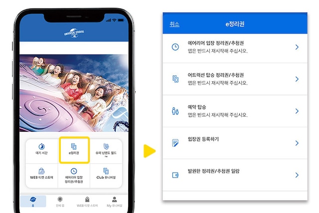 앱으로 예약 탑승(e정리권)을 취득하는 방법 >