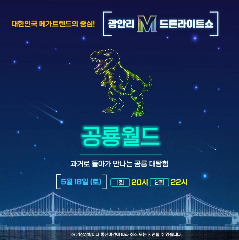 매주 토요일 저녁, 새롭고 다양한 콘텐츠로 광안리 밤하늘을 아름답게 장식하는<광안리 M 드론 라이트쇼>