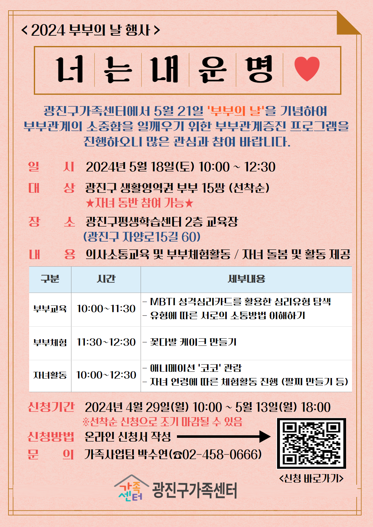 광진구가족센터 <2024 부부의날 행사"너는 내운명"> 참여자 모집