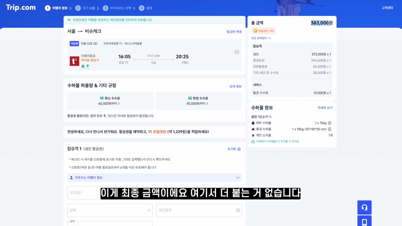 항공권 가격에 따른 추가 금액이 많은 편이라 70~80%의 경우 추가 비용이 들어요.