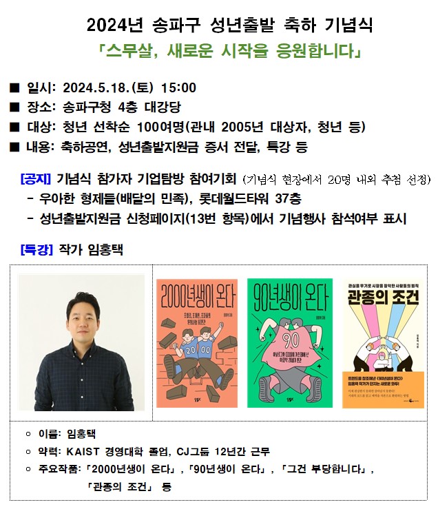 ○ 사 업 명: 2024. 송파 성년출발지원금