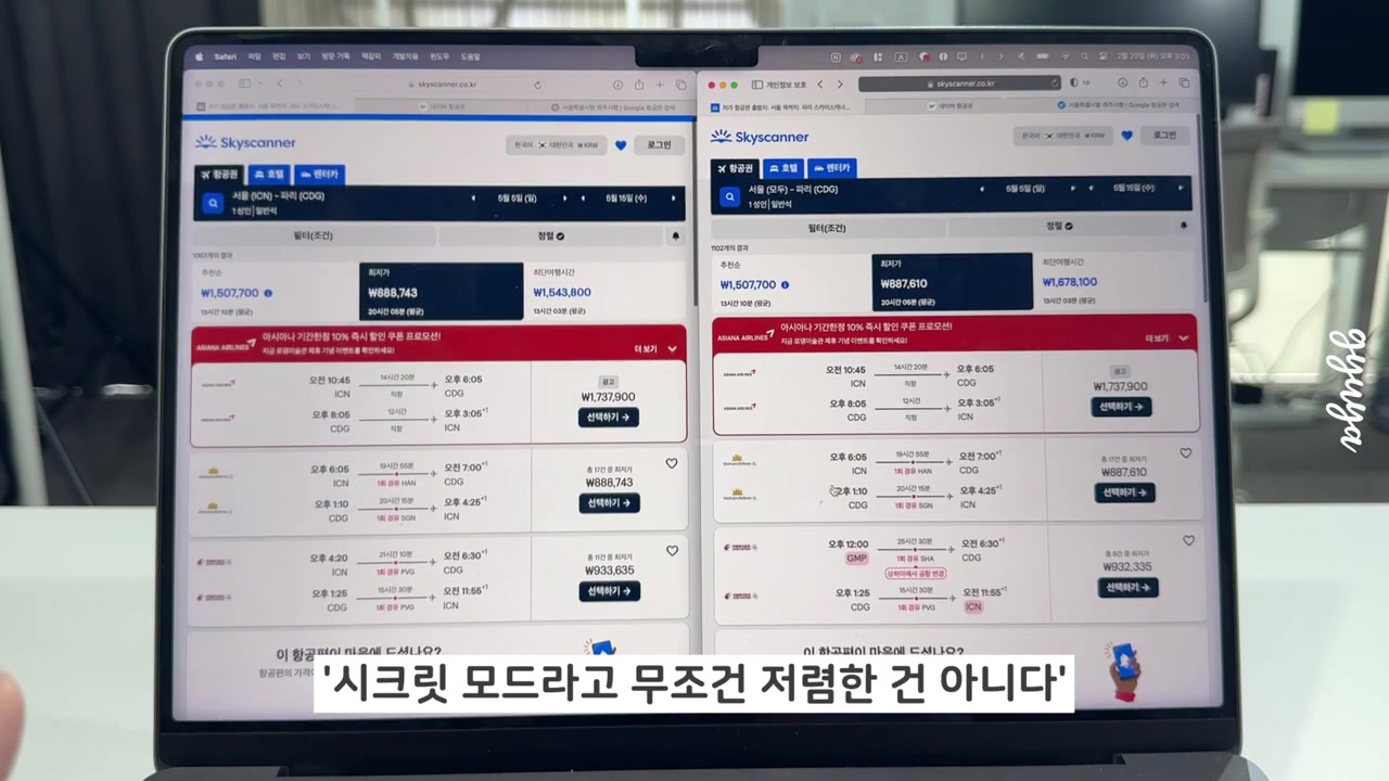 항공권 비교와 시크릿 모드의 중요성?