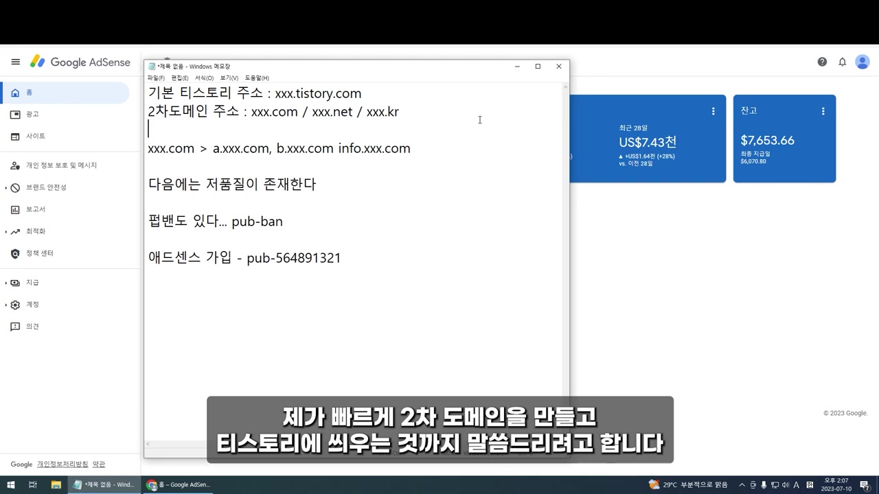 만약 수익이 20~30달러 정도로 나면, 새로운 애드센스 계정 승인을 받을 수 있으므로 2차 도메인 사용을 추천해요.