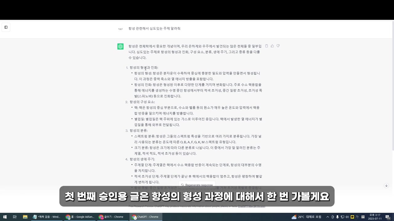 마지막으로, 항성을 주제로 글을 작성하는 과정을 보여줬어요.