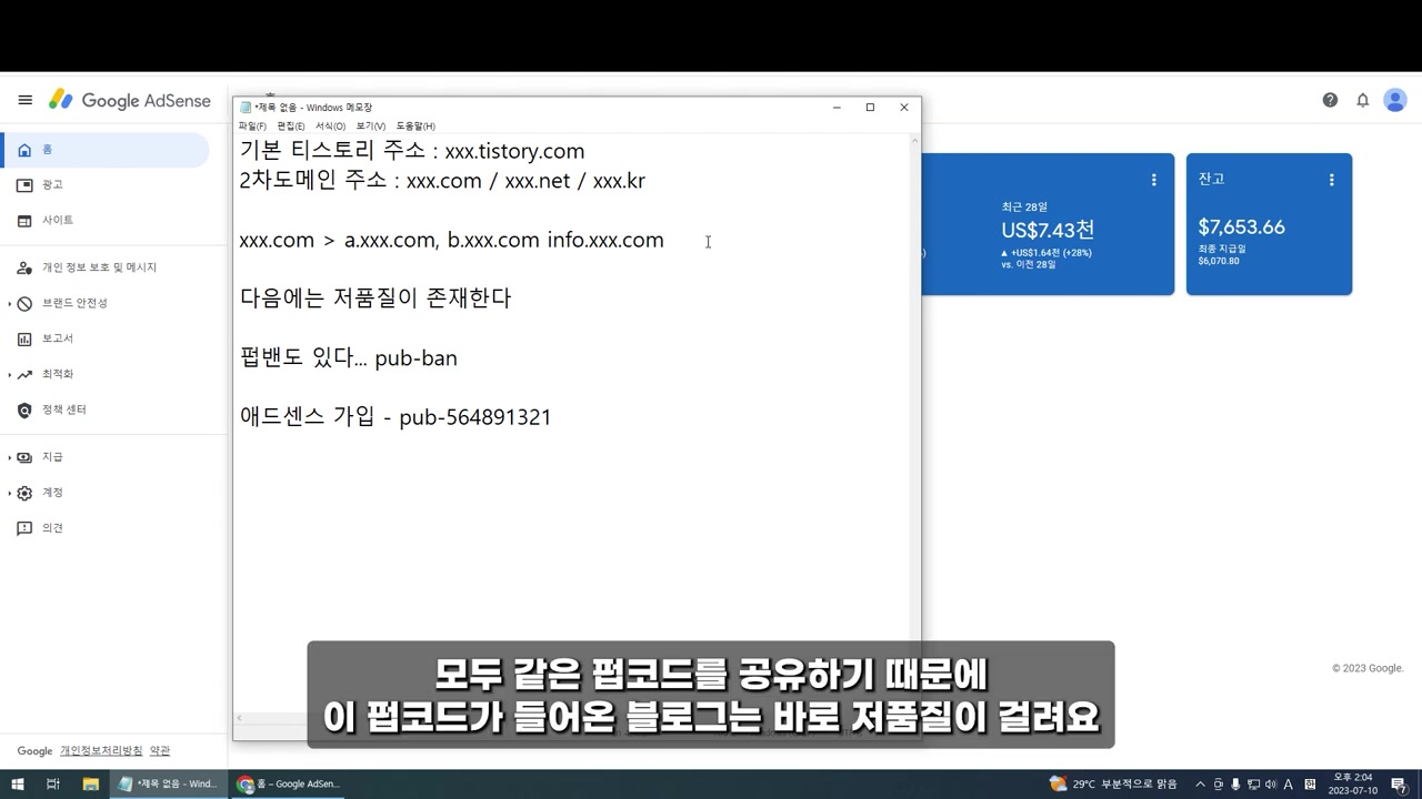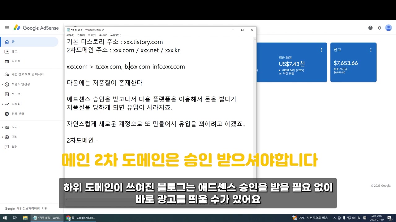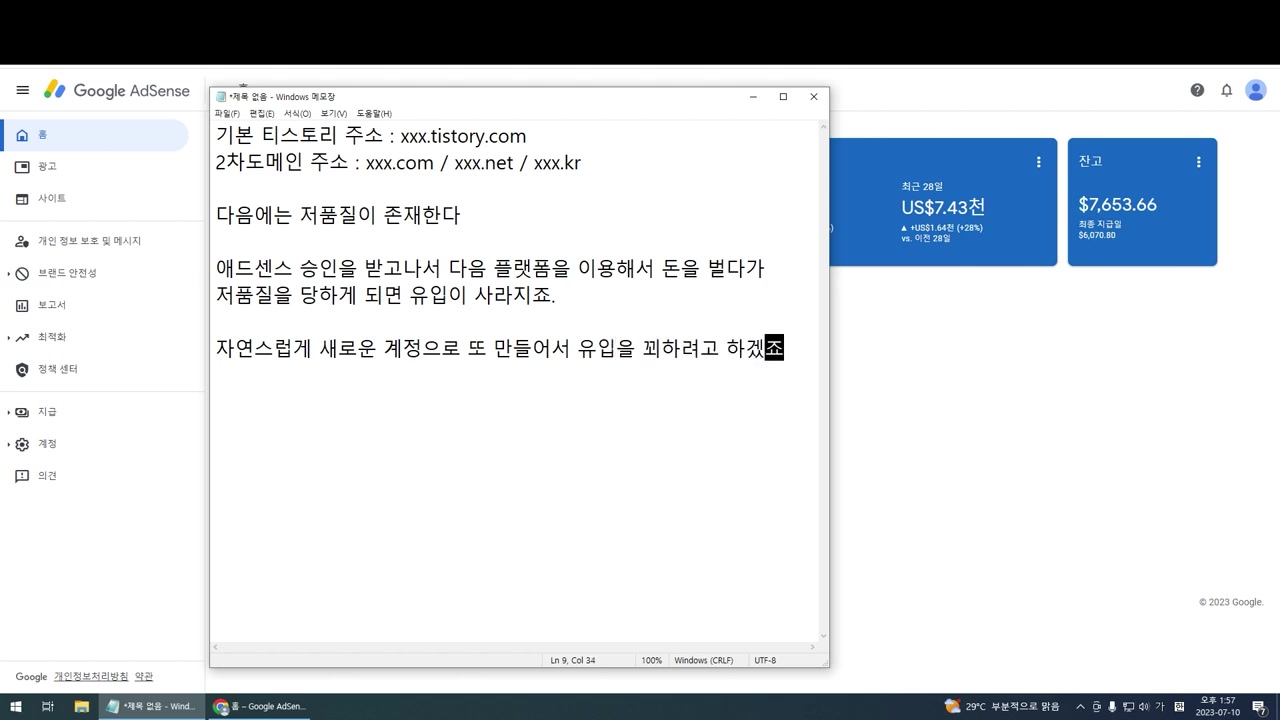 만약 수익이 20~30달러 정도로 나면, 새로운 애드센스 계정 승인을 받을 수 있으므로 2차 도메인 사용을 추천해요.