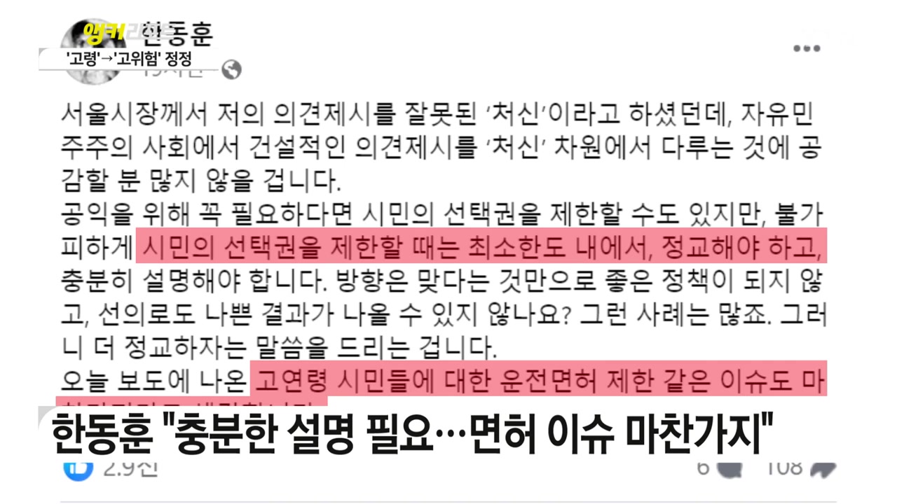정부가 고령 운전자 대신 고위험 운전자를 조건부 발급 대상으로 수정하며 논란이 생겼어요.