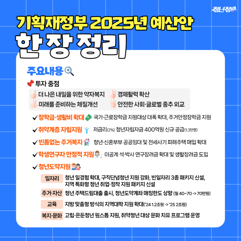 2025년 예산안에는 4만 2천명의 대학생에게 연 240만 원 상당의 주거 안정장학금을 지급하는 항목이 신규로 배정됐어요.