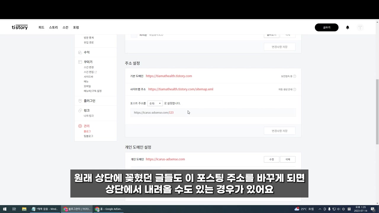 이미 많은 글을 작성했다면 URL 주소를 변경하는 것은 불필요해요.